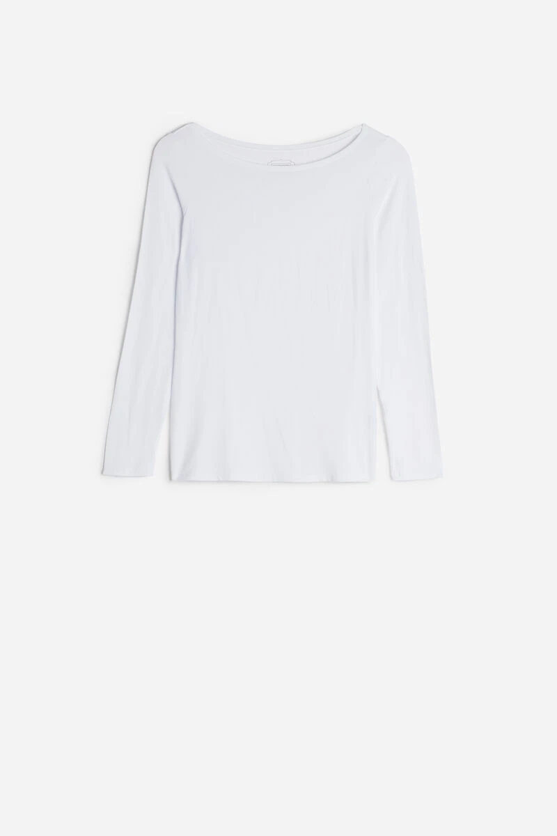 Long-sleeve boat-neck top in soft micromodal.