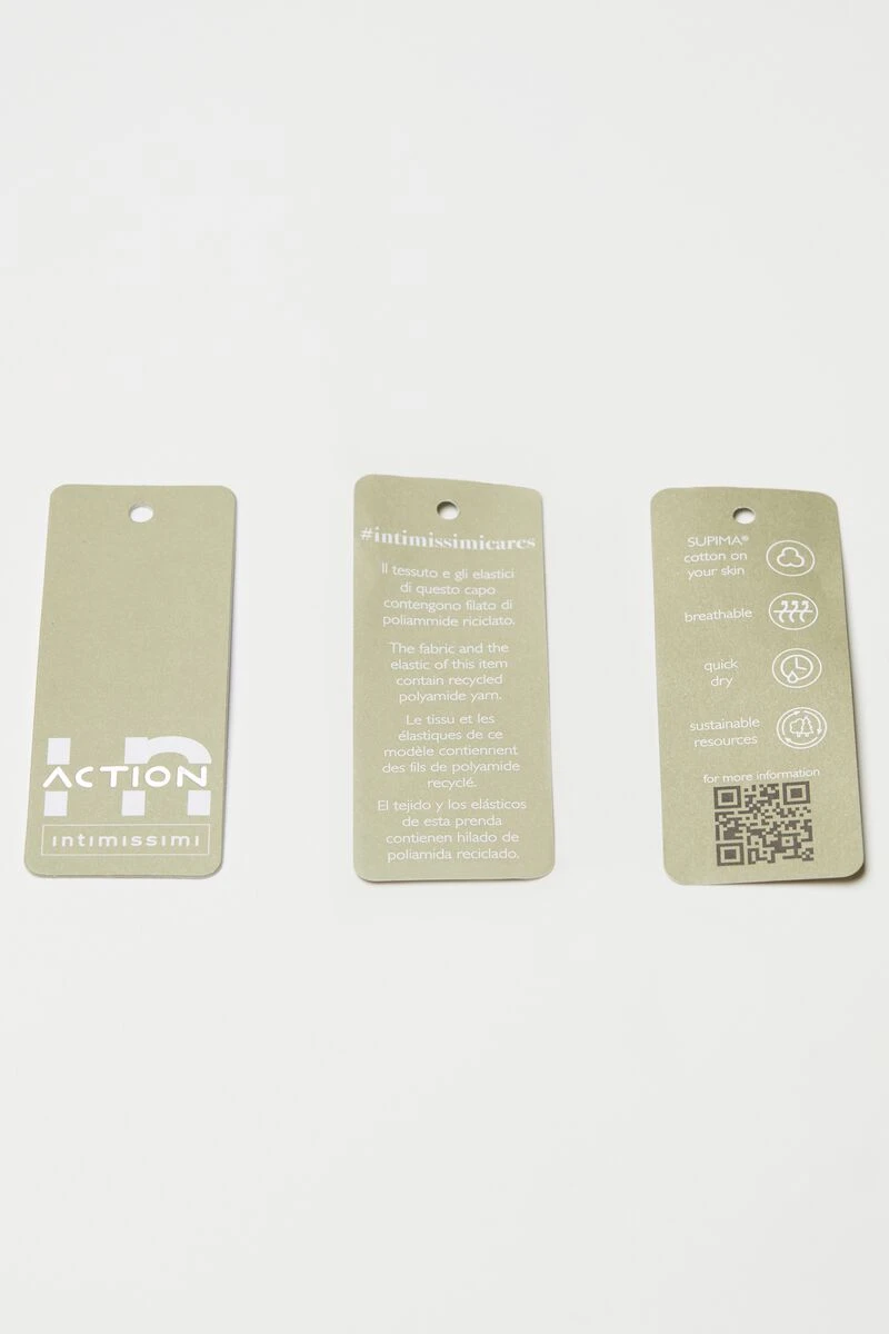 Bra top from the In Action line with underband, lightly padded and non-wired with no fastening. It features an ultra-light cup that provides compact support and multiple crossover straps on the back. Crafted from breathable moisture-wicking fabric with a microfibre outer and Supima® cotton inner.