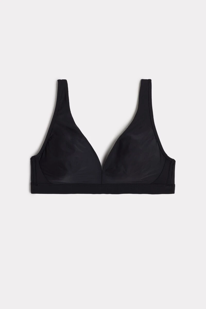 Lara non-wired triangle bra in ultralight microfibre, with boning at the sides. Moulded double-layered cups that continue into the shoulder straps. The shoulder straps can be hooked together at the back for a more sporty effect or to wear the bra under particular items of clothing.