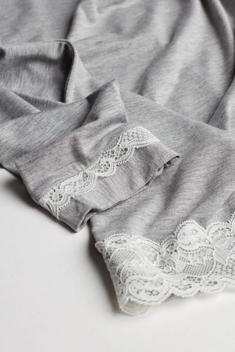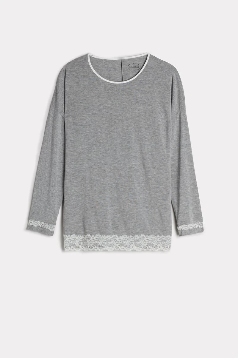 Long-sleeve round-neck modal top. Featuring lace details on the cuffs and hem. The model is 179 cm tall and wears size S.