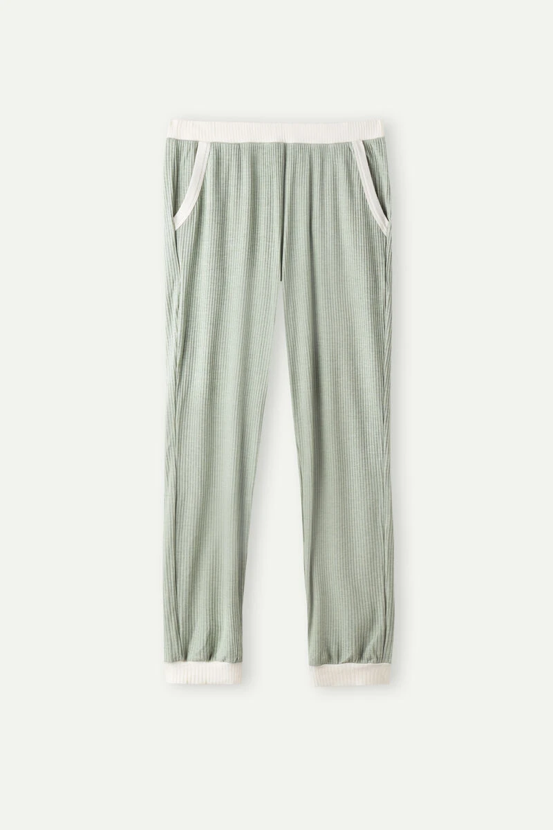 Full-length jogging trousers made from soft, slightly stretchy ribbed modal. Front pockets and contrasting trim. Regular fit.