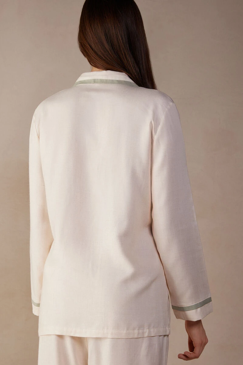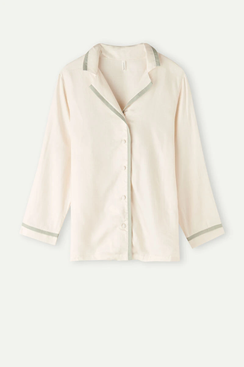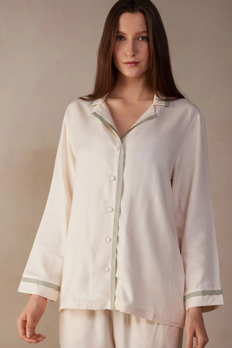 Long-sleeve menswear-cut top made from plain-weave modal with contrasting trim. Relaxed fit.