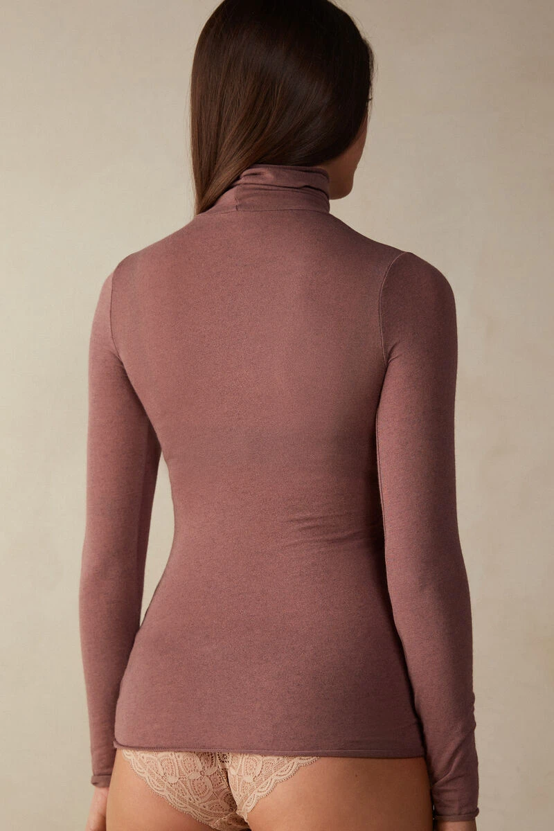 Long-sleeve top in soft modal cashmere ultralight with a high-neck design.