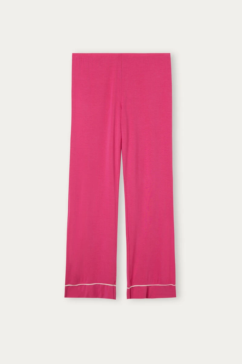 Full-length modal palazzo trousers with contrasting trim on the hem. Relaxed fit.