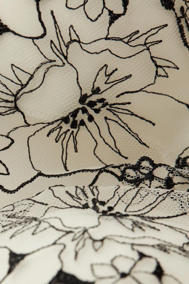 Giorgia balconette bra with underwire and graduated padded cups that create the effect of a larger size. Crafted from floral-embroidered tulle with a tattoo effect and trimmed with satin. Embellished with a jewel detail under the bust. The underband is made from soft tulle. The shoulder straps are adjustable at the back. The plunging V-shaped scalloped neckline accentuates the décolletage, making this model ideal for those who like a feminine and sensual style.