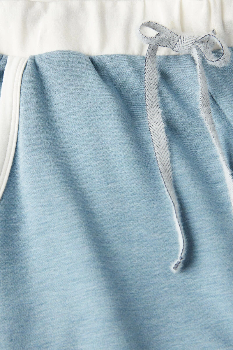 Full-length palazzo trousers crafted from soft and warm modal fleece with wool, detailed with contrasting-colour trim. Drawstring waist and front pockets. Relaxed fit.