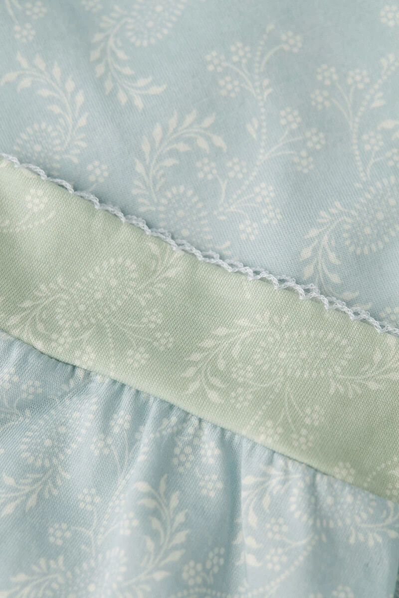 Long sleeved ultrafresh Supima® cotton jersey top with cashmere pattern print. Contrasting neck and cuffs trimmed with romantic loop stitch. Regular fit.