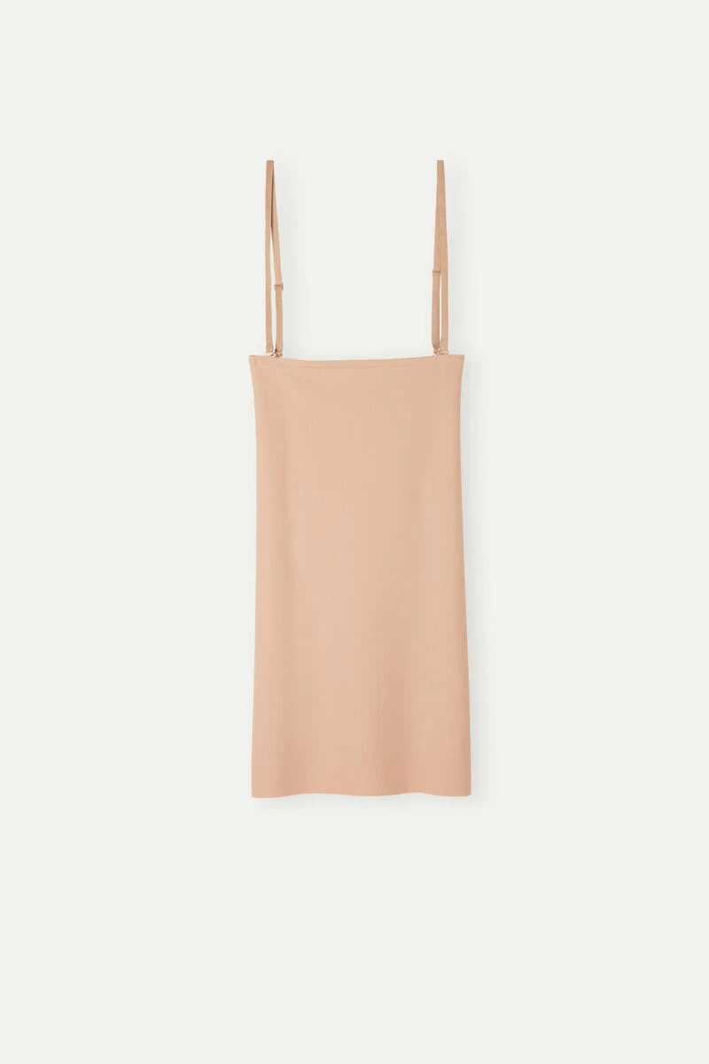 Shaping microfibre slip with high waist and removable straps. The underband is fitted with a silicone-backed elastic with eyelets to allow the straps to be adjusted and perfectly positioned or the garment to be worn without them. The slip features double-layered fabric where it matters most, like the stomach, hips and under the bottom for a comfortable sculpted and shaped finish. The seamless finish is ideal for those looking for invisible underwear to wear under the tightest clothes.