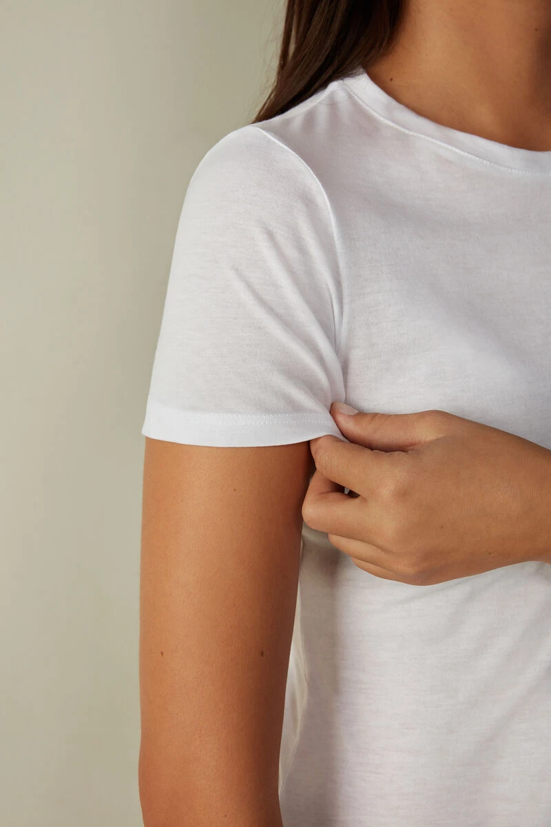 Short-sleeve T-shirt with round neck in 100% Supima® Cotton Ultrafresh. The high quality fiber, incredibly light and breathable, is characterized by a good elasticity, despite being free of elastane. The fabric structure guarantees good resistance to washing. Simple and comfortable knit, ideal to be worn on any occasion, both as an intimate and as an outer garment for a comfortable and casual look.