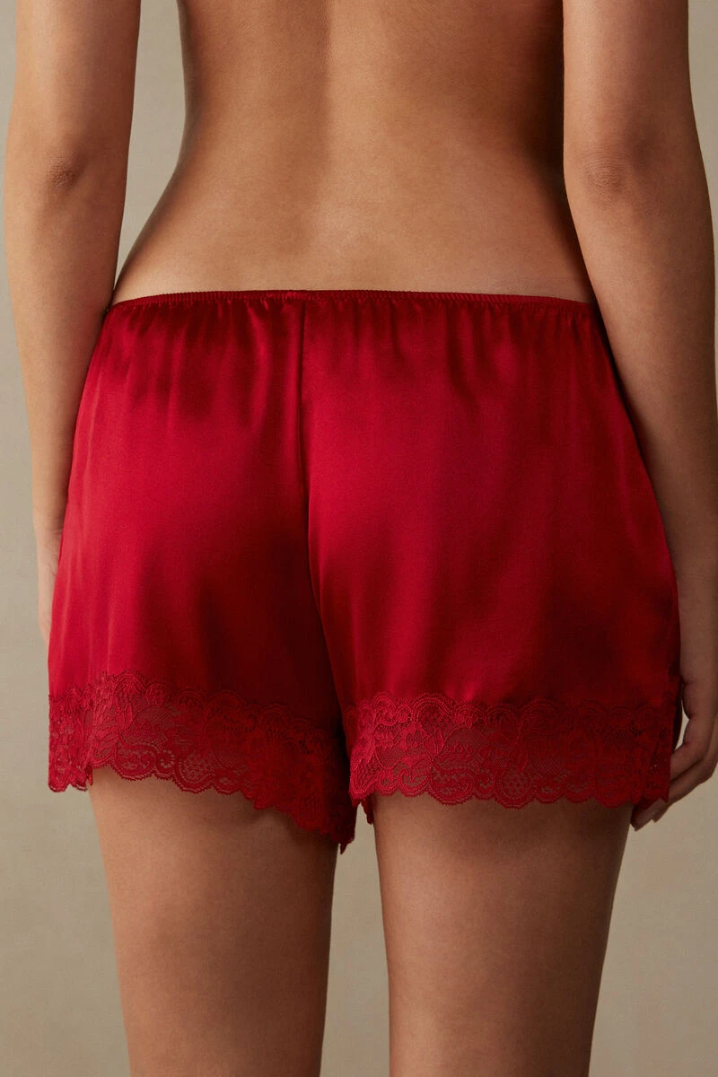 Silk shorts with lace trim. The model is 179 cm tall and wears size S.