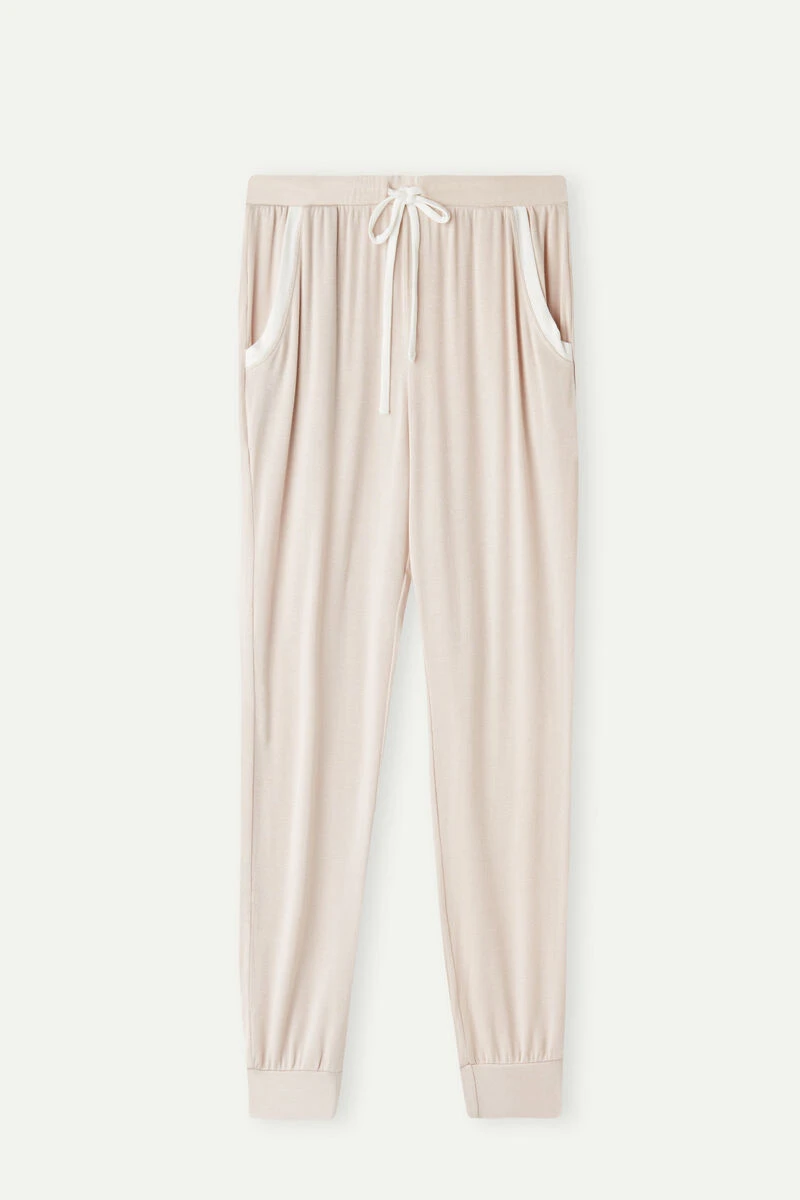 Long jogger-style trousers in tricot-effect modal jersey. With a drawstring waist, side pockets and ankle cuffs. Elegant contrasting finishes. Regular fit.