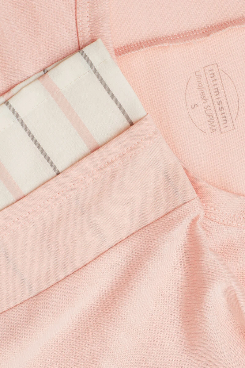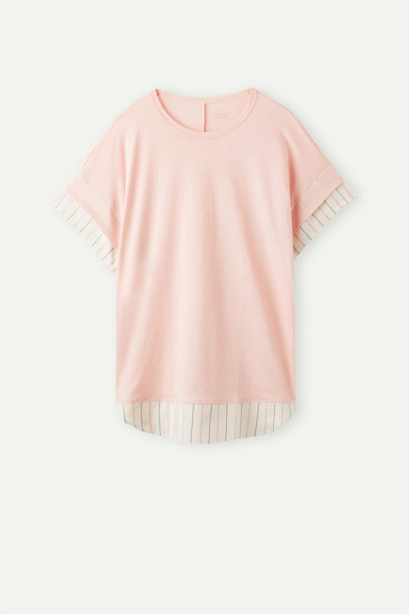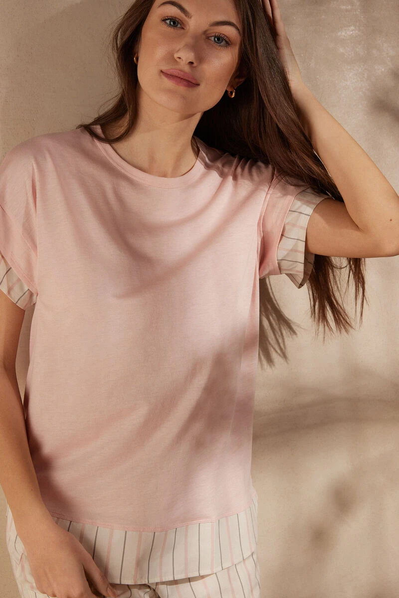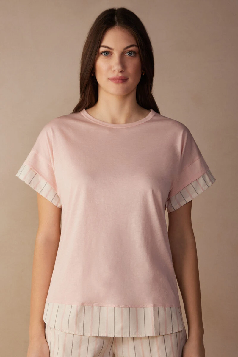 Short-sleeved round-neck ultrafresh Supima® cotton jersey top. Striped plain-weave cotton trim on the sleeves and hem for a shirt effect. Regular fit.