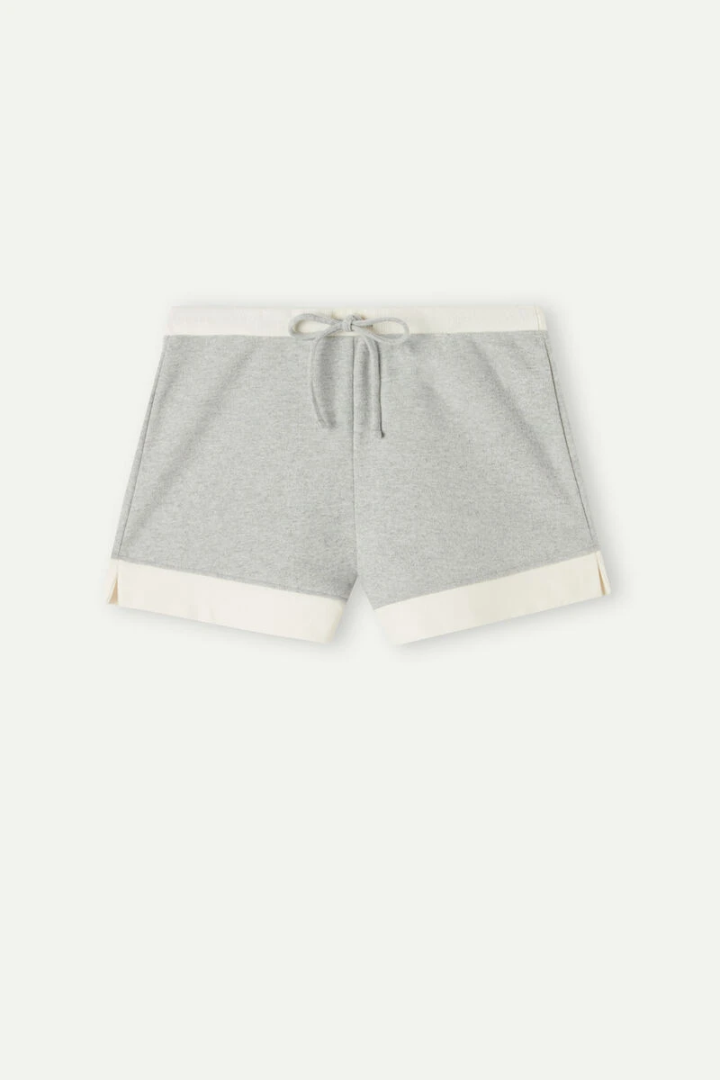 High-waisted shorts with drawstring waist and contrasting-colour trim, crafted from soft and warm fleece fabric. Side slits. Regular fit.
